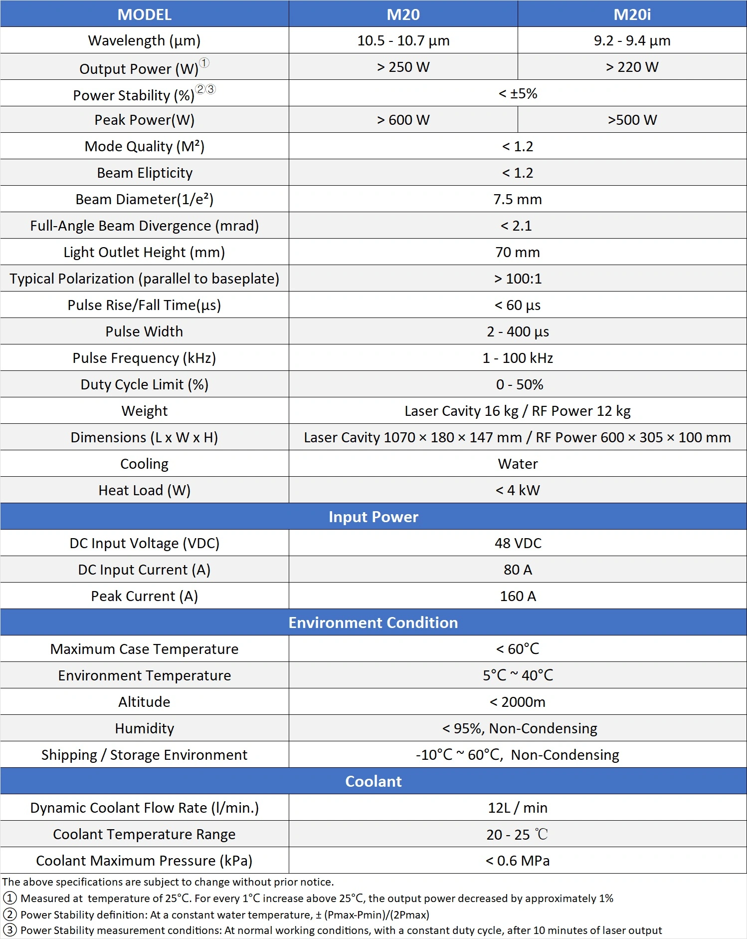 The M20 RF CO2 laser is a pulsed laser with an average power of over 250W and a peak power of over 600W. The product adopts a slat discharge design, with high product reliability, and can work continuously for 7×24 hours in harsh industrial environments. The M20 laser has excellent beam quality and fast pulse rise/fall time, which can minimize the heat affected zone. The laser wavelength ranges from 9.3 to 10.6μm, with good power stability, which can achieve excellent processing results and improve process efficiency. These features make it the laser of choice for high-performance laser processing systems, and it only requires very low use and maintenance costs. The M20 laser is an ideal choice for laser processing of many materials. Applications include laser cutting, glass splintering, automotive parts processing, cloth cutting, laser cleaning, large-format marking, medical beauty and 3D printing.