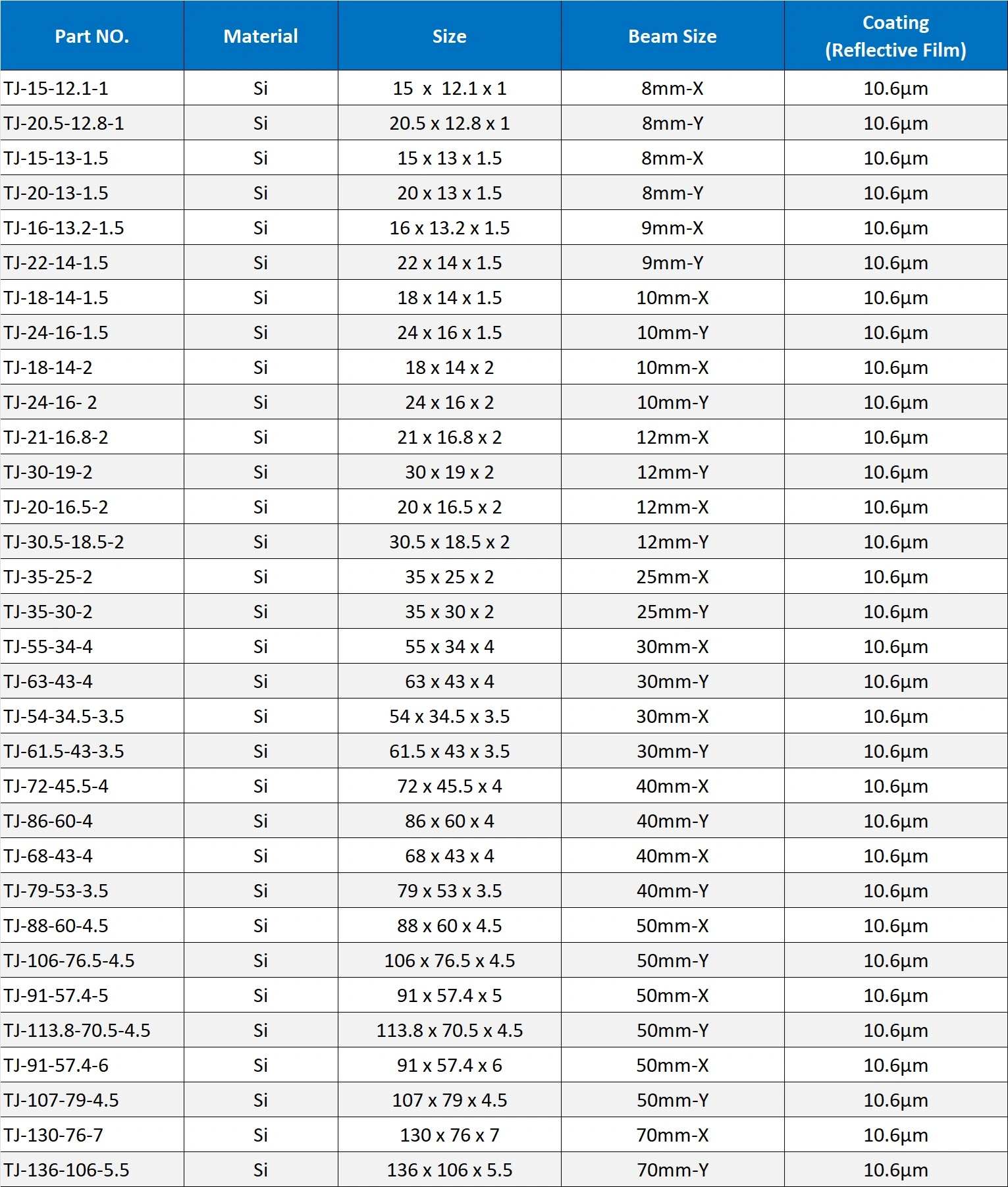 These silicon mirrors, which combine excellent thermal stability and high reflectivity, enable cost-effective, high-performance galvo scanning systems to be built. These optics are available in a variety of sizes and shapes, with coatings optimized for any wavelength in the 1.0 to 12.0 µm range, as well as dual-wavelength coatings for reflecting infrared lasers and visible alignment beams.
